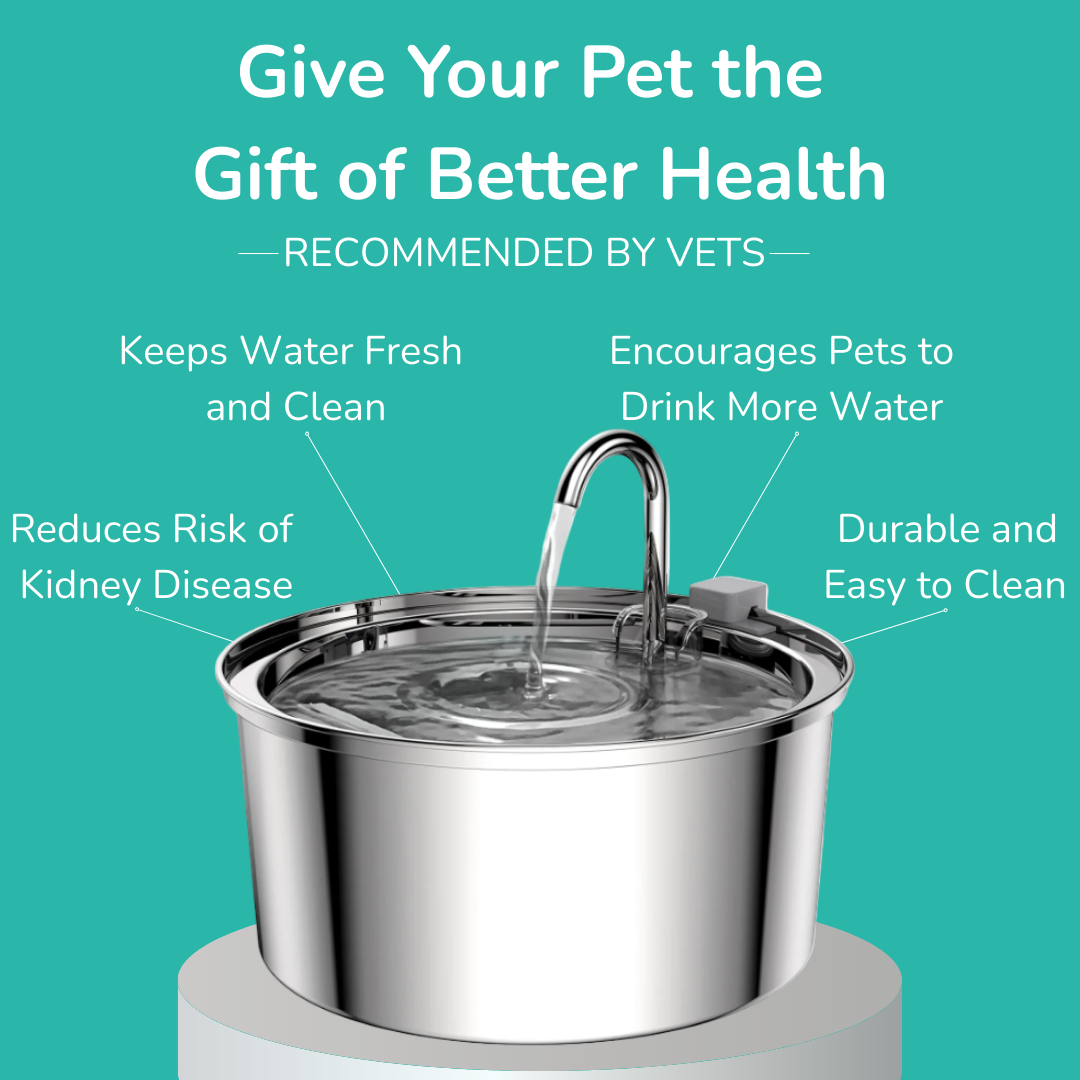 Made from high-quality stainless steel, it provides a steady stream of filtered water, keeping your furry friends happy, healthy, and hydrated.