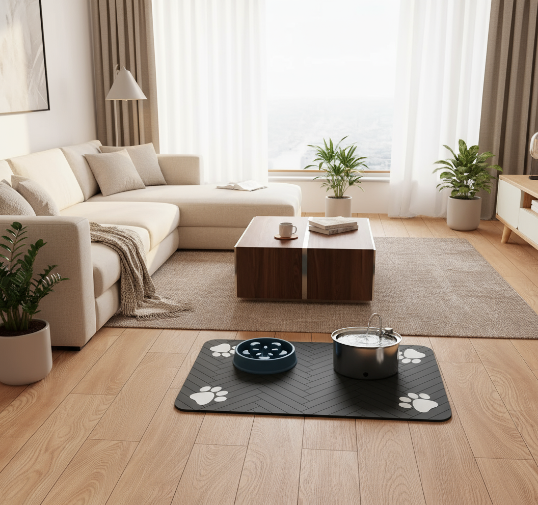Pair your HappySip Water Fountain with our HappyBite Slow Feed Bowl and our Feeding Mat for a clean, stress-free feeding area your pet will love.